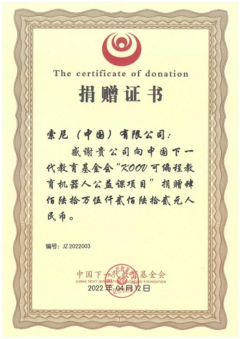 索尼向中国下一代教育基金会捐款 460 余万元,用于青少年编程教育启蒙